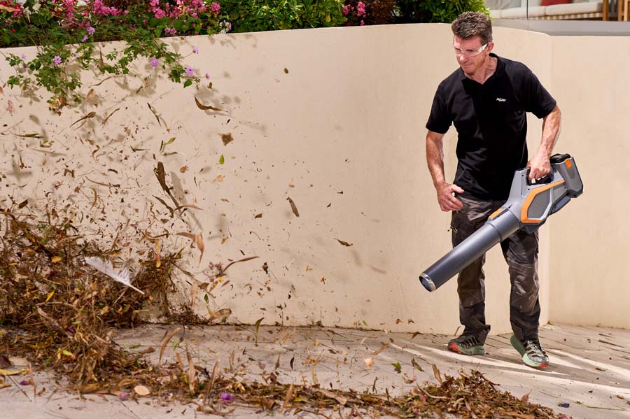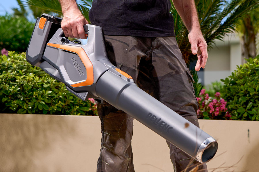 Il soffiatore a batteria on-board AIRION ESSENTIAL coniuga potenza, comfort di lavoro e il massimo dell‘ergonomia. La progettazione ha ereditato l’aspirazione a gomito dal modello AIRION Pellenc, progettato per facilitare un lavoro senza fatica limitando al massimo la tensione del polso dell‘operatore. AIRION ESSENTIAL è dotato di uno schermo LED che permette di controllare la percentuale di batteria residua e regolare le opzioni di comando: BOOST, Cruise Control e le sue 3 velocità. La modalità BOOST con una spinta a 23N e la velocità di lavoro a 18N permettono di adattarsi a tutte le situazioni di pulizia.