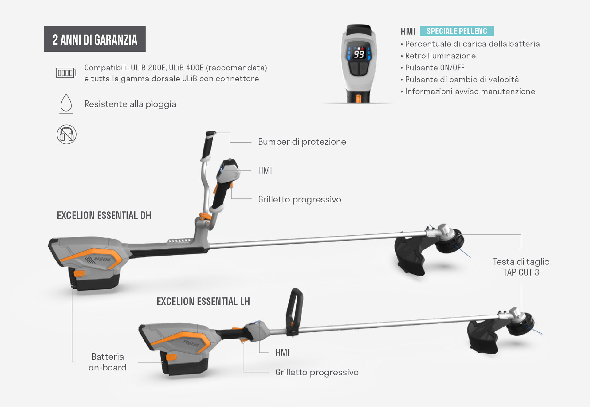 I nuovi attrezzi ESSENTIAL sono compatibili con la nuova gamma di batterie on-board ULiB 200E e 400E ad alte prestazioni ma anche con le batterie ULiB dorsali PELLENC. Scoprite l’essenziale delle prestazioni professionali accessibili a tutti.