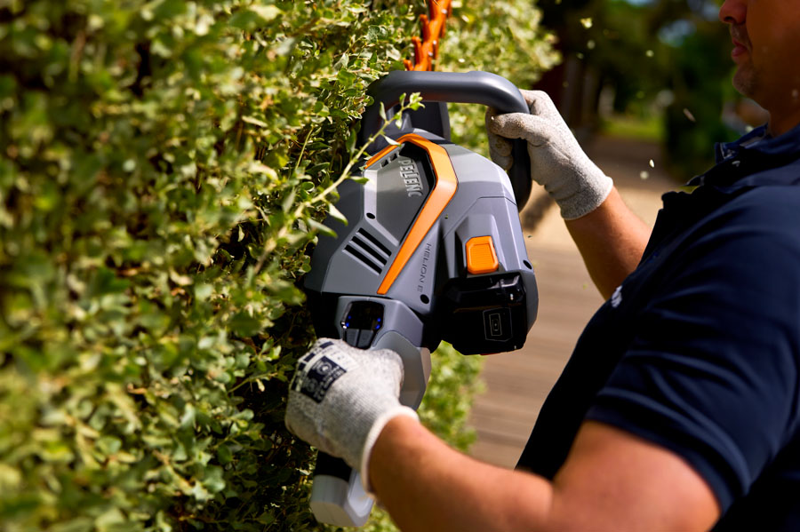Il tagliasiepi a batteria on-board HELION ESSENTIAL è progettato per offrire robustezza ed efficienza in potatura e in rifinitura. Il design equilibrato garantisce un utilizzo maneggevole ed efficiente. Potente, la lama da 63 cm è dotata di denti a doppio tagliente per tagli precisi. È inoltre dotato di un’impugnatura ergonomica orientabile, un fermo di sicurezza e una protezione anti-taglio avvitata. L’HMI con schermo LED visualizza la percentuale di batteria residua e permette la selezione delle velocità di taglio regolabili su tre livelli.